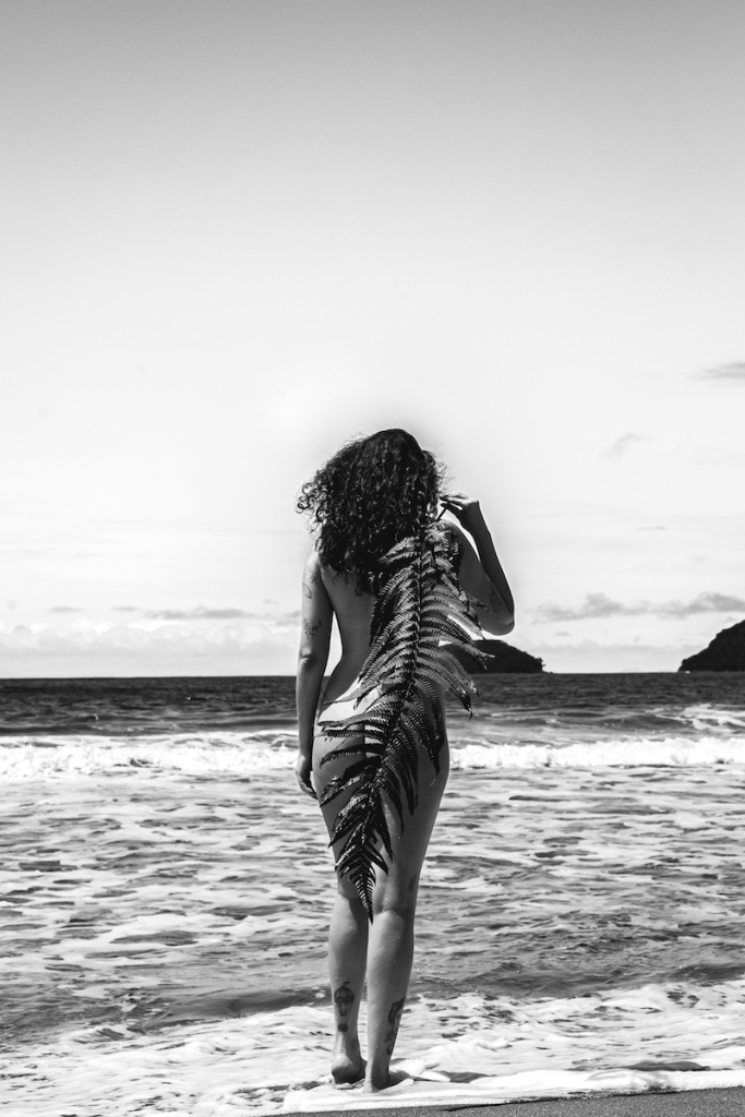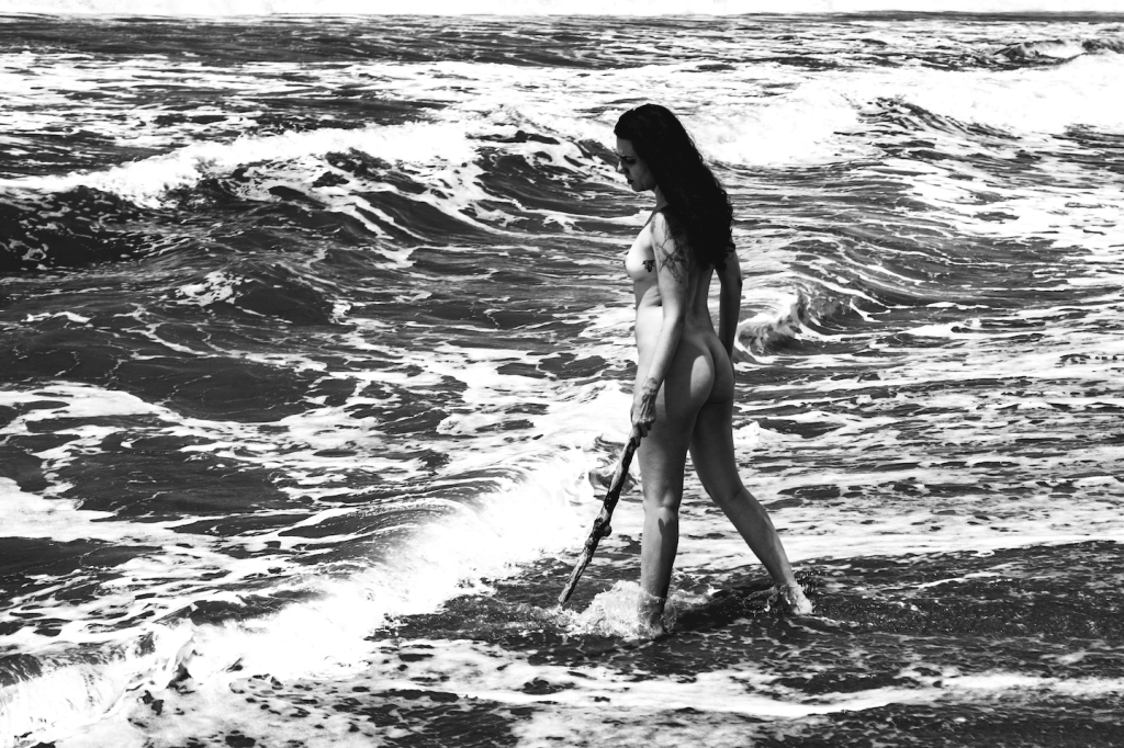 It had been a few years since I had been to the beach and I had never taken my camera to create something on the beach. With my partner I found a more secluded beach with fewer people and we took just the camera, hoping that we would find “things” on the way to contribute to the creations, and we did. A naked body, a beach and 3 objects: A leaf, a twig and a flower. Things from nature that inspired us to create and when we saw, we had built a narrative with the four elements, having water as something present in all photographs. It was a very pleasant session and the result delighted me. You can notice the leaf showing a relationship of interaction with the air, the poses with the branch show the model more grounded, referring to the earth element, and the flower, red, vibrant like fire and since there is light, that is why they are the only colorful ones. A curiosity of this collection is that although the beach was far away, it wasn’t a nude beach, so we broke the rule and took the risk lol