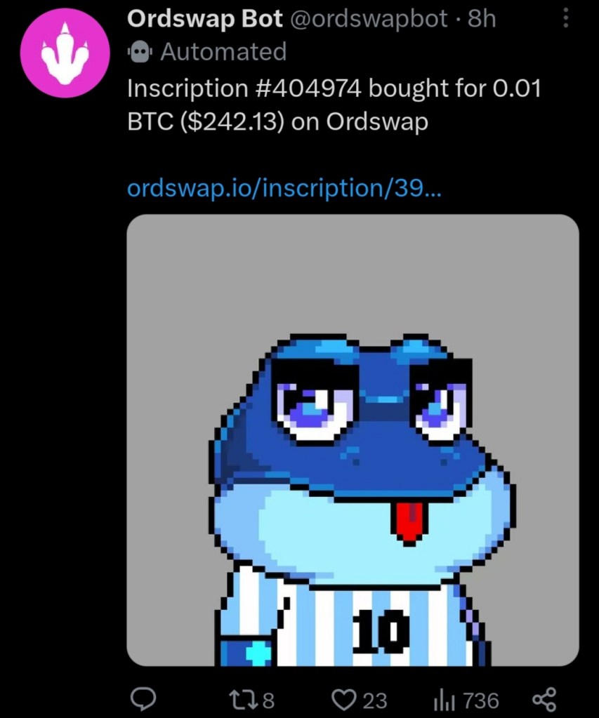 I’ve seen several successful sales of Bitcoin Frogs. How is the ordinals market for them? Are buyers bullish?